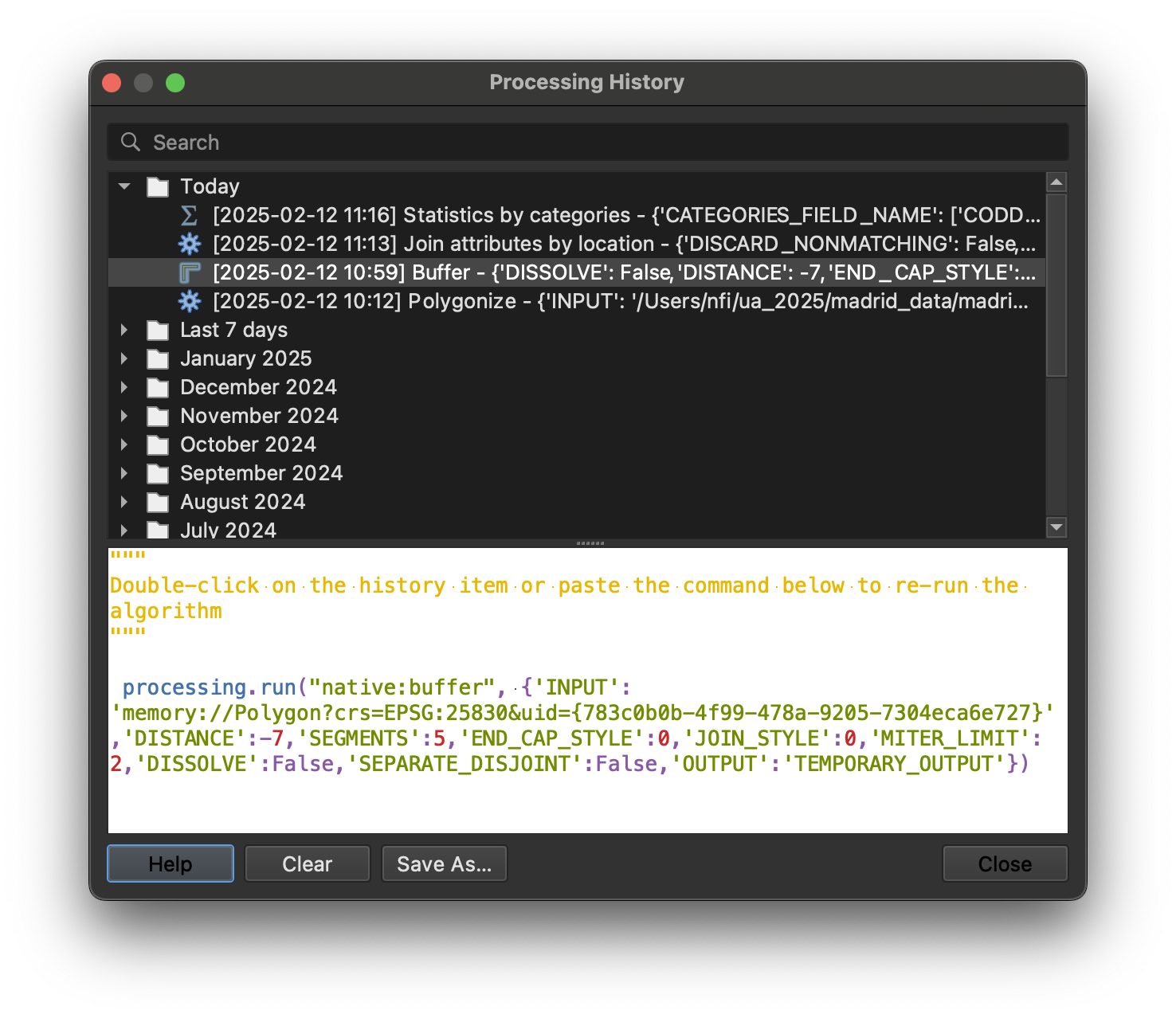 The History panel records every processing operation you run. This is useful when a result isn’t what you expected (you can see exactly what parameters were used) or when you’ve achieved something you want to replicate (you can document the steps).