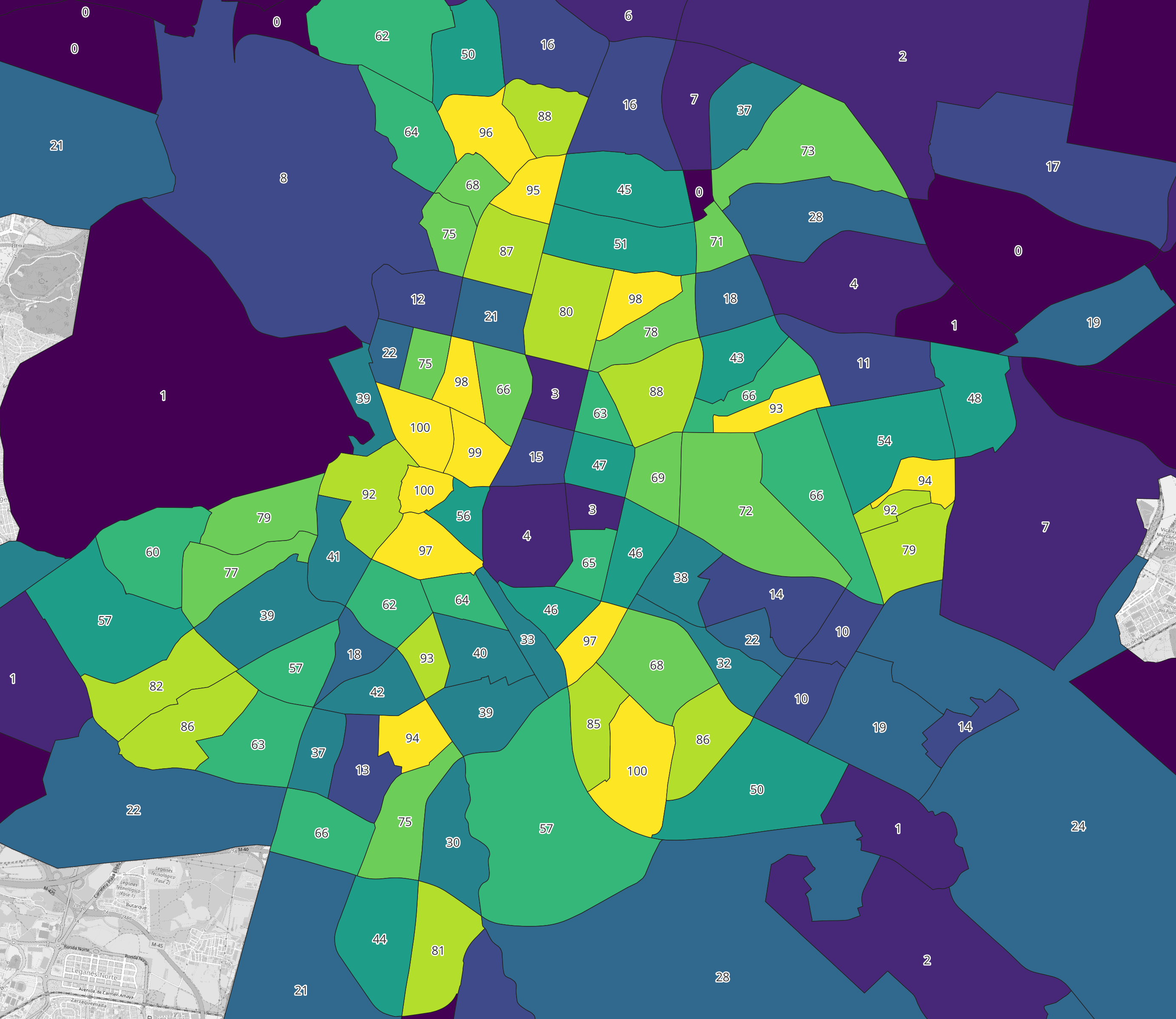 - Which neighbourhoods score highest, and which score lowest?