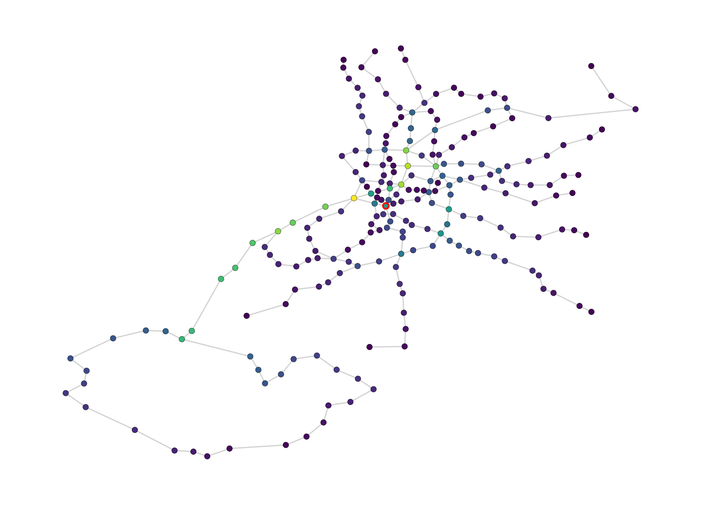 print(f" {station}: {delta:.1f}")Stations gaining the most betweenness: