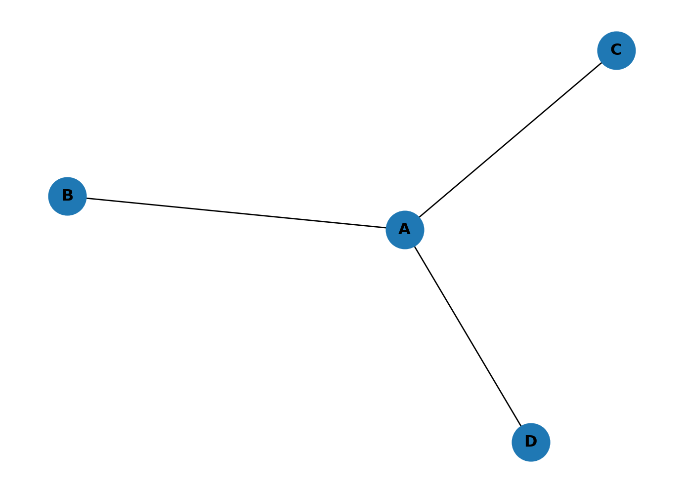 Edges: [('A', 'B'), ('A', 'C'), ('A', 'D')]