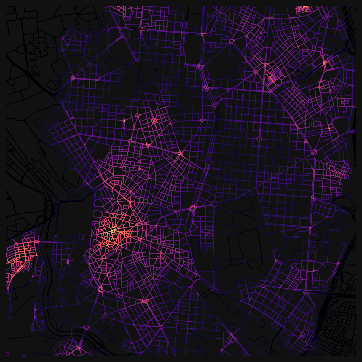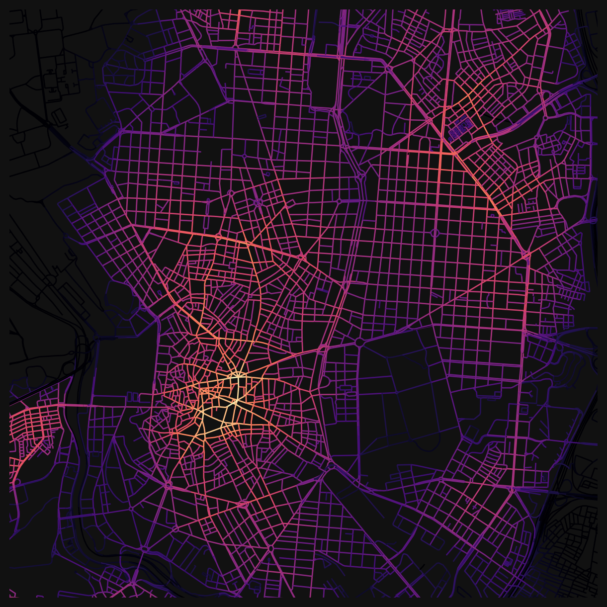 cityseer is a Python package for computing network centralities on street networks. It handles network cleaning, coordinate-aware shortest paths, and scales to tens of thousands of edges. You’ll use it here to compute closeness and betweenness centralities for Madrid’s street network.
