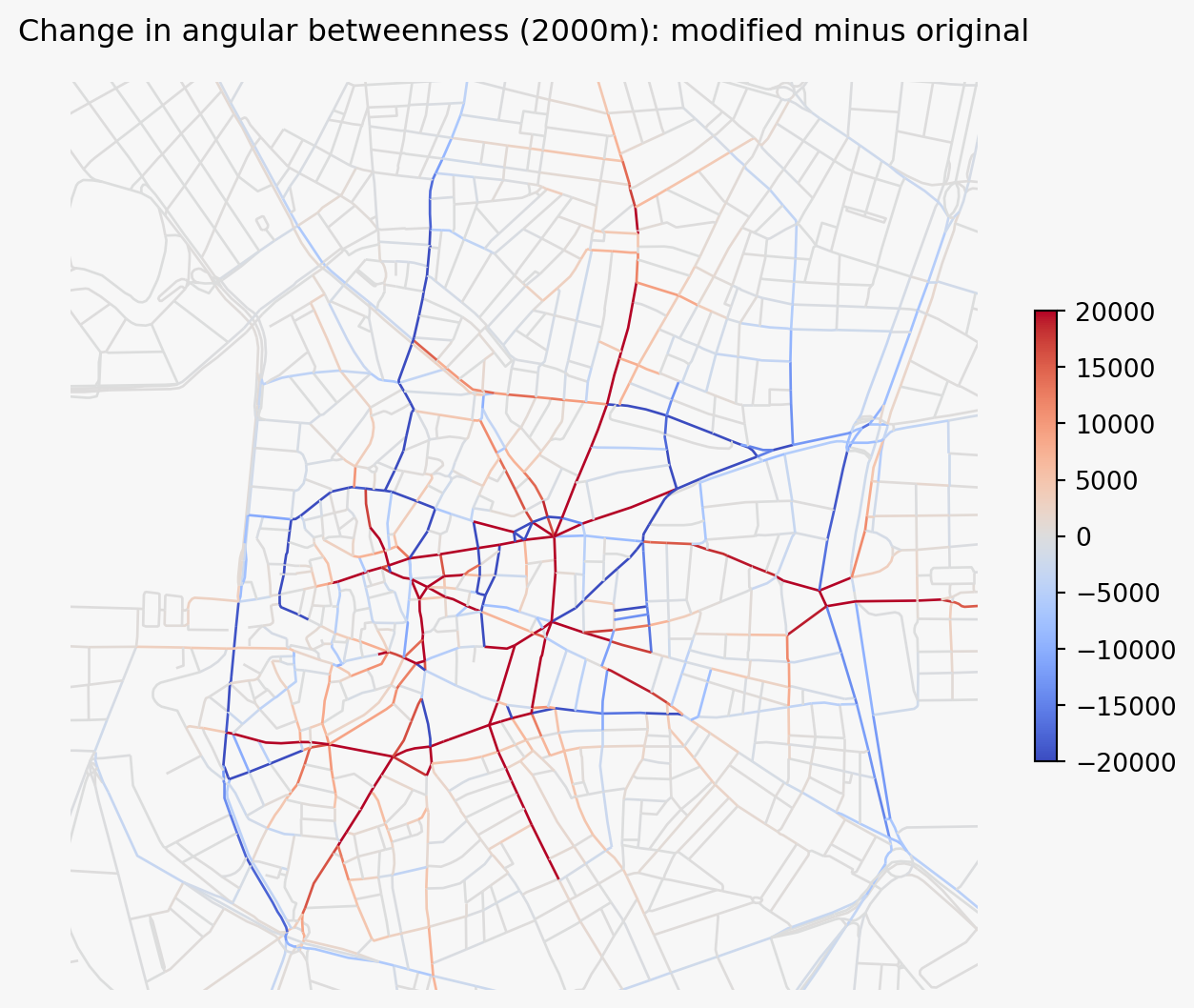 - Plots the result so you can see which streets gained or lost centrality.