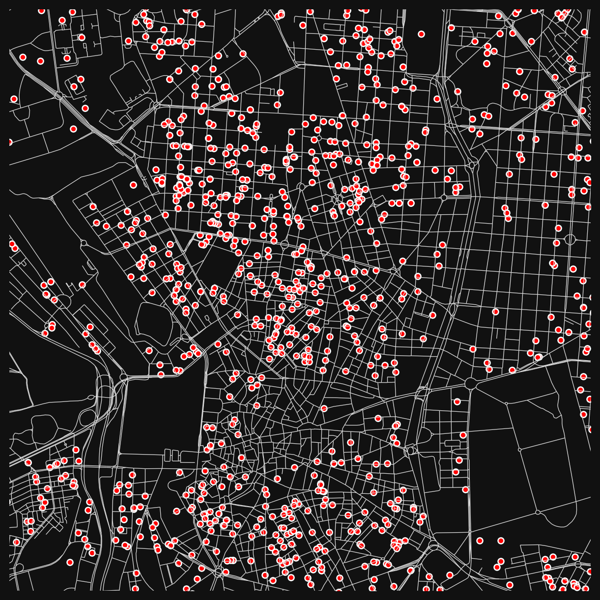 from cityseer.tools import graphs, ioDownload the Street Network, Madrid Premises, and Boundary for Madrid. Update the file paths as necessary.